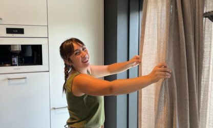 Madame et Monsieur Jans nous ont contactés pour habiller cette très grande baie vitrée. L'idée était de décorer, d'intimiser, d'améliorer l'acoustique de l'espace et casser le sentiment de froid en hiver de ce grand châssis.