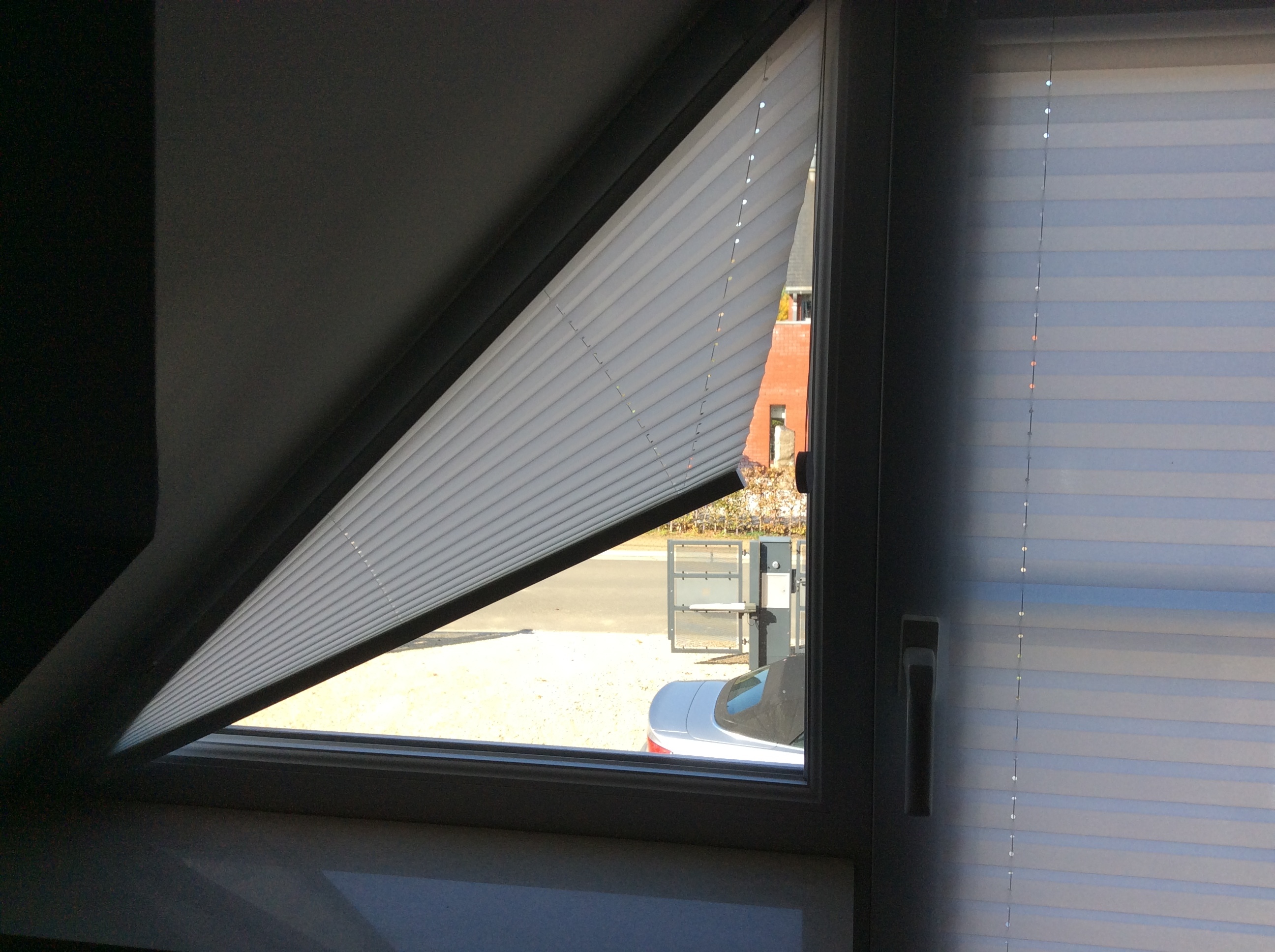 Notre gamme de stores plissés spécialement conçus pour les formes spéciales offre une multitude de solutions ingénieuses. Grâce à notre expertise en fabrication sur mesure et à nos astuces de fixation, nous sommes capables de répondre aux exigences les plus complexes : des triangles aux trapèzes en passant par les formes cintrées. Faites-nous part de votre projet et laissez-nous le réaliser sur mesure pour vous. Confiez-nous vos défis les plus audacieux, nous avons la solution parfaite pour vous !